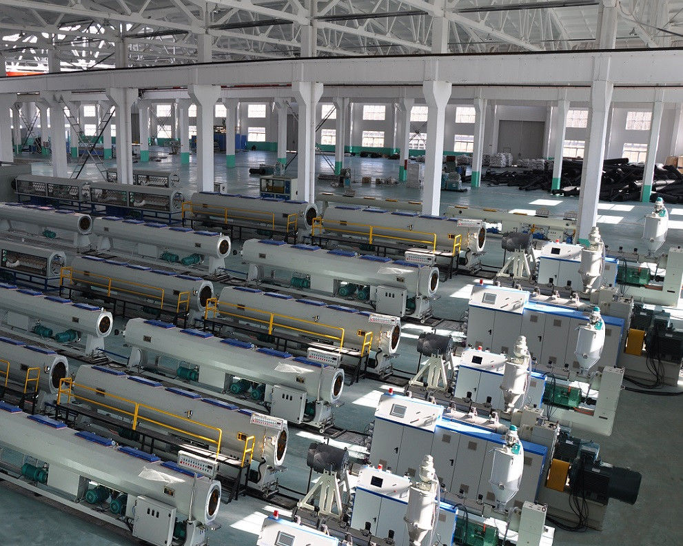 HDPE/MDPEの管の放出ラインは単一ねじ押出機の高速そして効率を採用します。ねじは障壁の単位、特別な材料のバレルの溝の混合の部品および新式を備えています。押出機は低雑音ファン、陶磁器の暖房リング、高速堅いギヤ減力剤、フル オートマチックの真空の積込み機が装備されています。この構成はよいplasticizationおよび混合の効果を保証します。それはまた高速、安定した生産および偉大な人の出力を保証します。