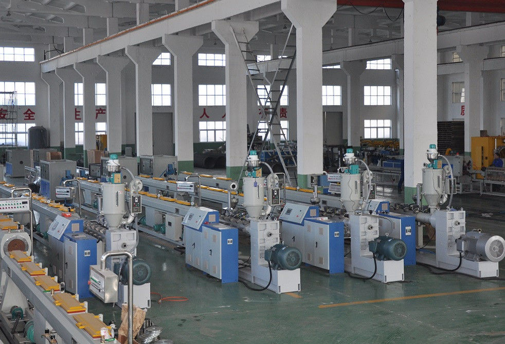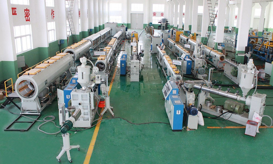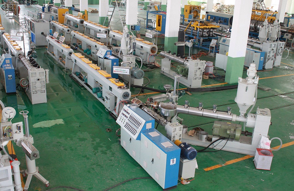 PPRの管の放出ラインは単一ねじ押出機の高速そして効率を採用します。ねじは障壁の単位、特別な材料のバレルの溝の混合の部品および新式を備えています。押出機は低雑音ファン、陶磁器の暖房リング、高速堅いギヤ減力剤、フル オートマチックの真空の積込み機が装備されています。この構成はよいplasticizationおよび混合の効果を保証します。それはまた高速、安定した生産および偉大な人の出力を保証します。