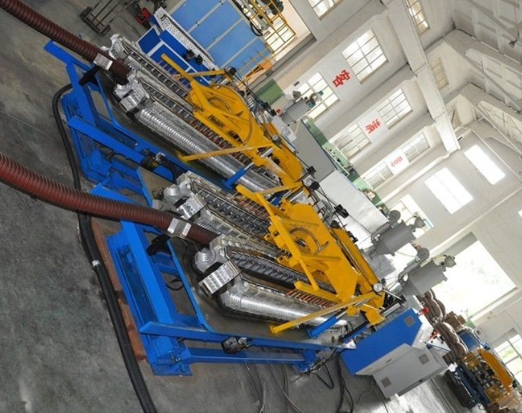 螺線形の管の生産ラインはプロフィールの管の押出機、溶解の押出機、ねじ機械、打抜き機およびある補助機械で構成される。それに低い投資、高出力、高性能、安定した性能、単位、よいクリープ抵抗、容易な関係および経済的ごとに軽量高いリング剛さがある。