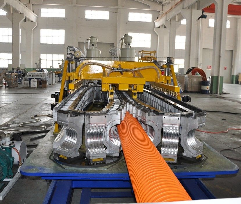 SBG250 (ID90mm - 250mm)二重壁の波形の管ラインは2台の単一ねじ押出機、二重チャネルの構造、窒化の磨く処置を頭部死ぬ採用する。