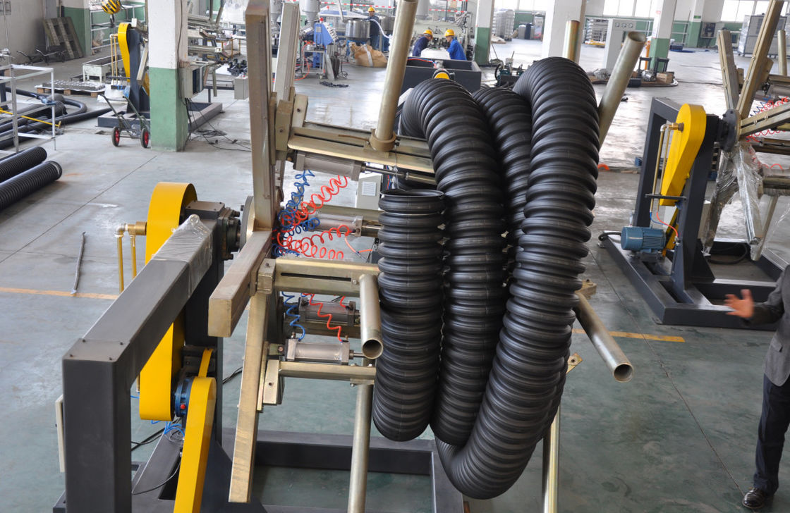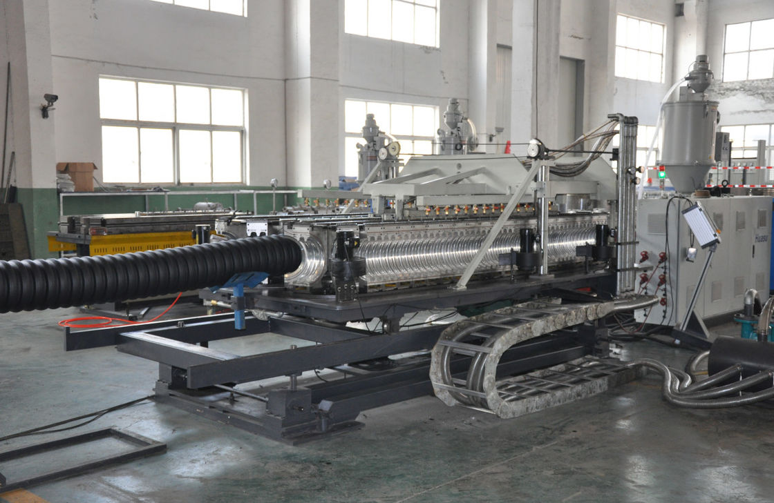 SBG250 (ID90mm - 250mm)二重壁の波形の管ラインは2台の単一ねじ押出機、二重チャネルの構造、窒化の磨く処置を頭部死ぬ採用する。