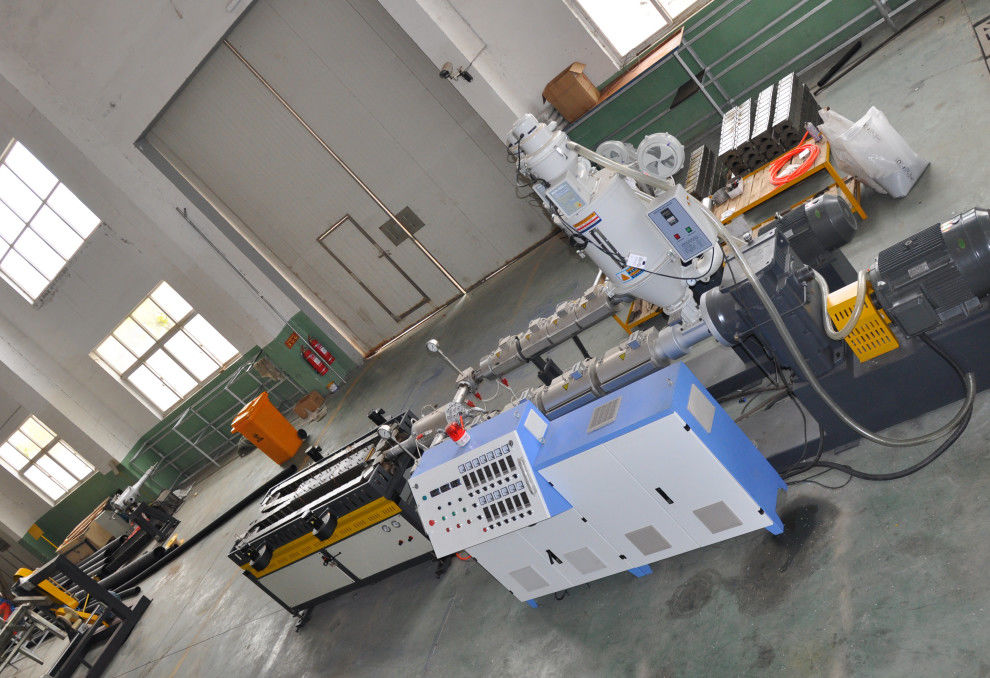このsignleの壁の波形の管の放出ラインは主に押出機、波形の形成機械を含んでいて、頭部および型のブロック、冷房機器死に、機械およびウィンド マシーンを数える。それは絶えず単一の壁が管を波形を付けた多くの種類の直径を作り出すことができる。