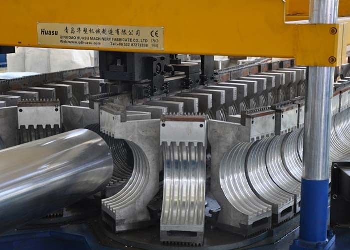 PE/PPの単一の壁の波形の管機械使用単一ねじ押出機、ポリ塩化ビニールの単一の壁の波形の管の放出ラインは単一および二重sctrewの押出機を使用できる。