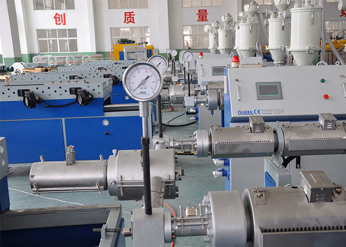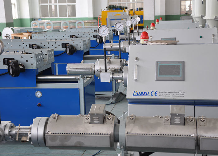 それはPP-Rの16mm~160mmからの直径が付いているPEの管、16~32mmからの直径が付いているPEの管を作り出すために主に使用される。適切な下流装置によって装備されていて、それはまた法律学者層PP-Rの管、PP-Rのガラス繊維の管、PEおよびEVOHの管を作り出すことができる。プラスチック管の放出のための経験の年によって、私達はまた高速PP-R/PEの管の放出ラインを開発し、最高の生産の速度は35m/min (20mmの管の基盤)であることができる。