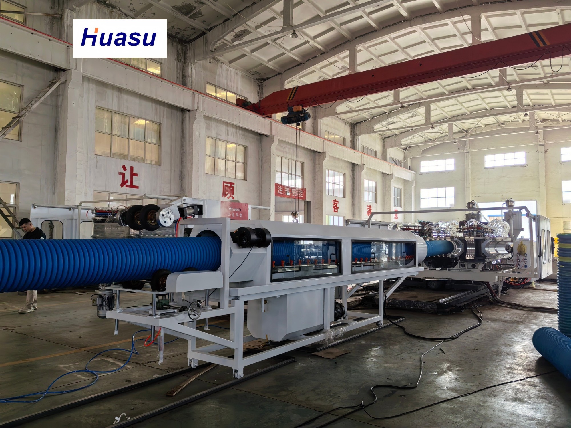波紋管線シャンドンHUASUの改良された製品の3世代です.前製品と比較して,挤出機の出力とパイプの生産速度が 20-40%大きく増加しています.