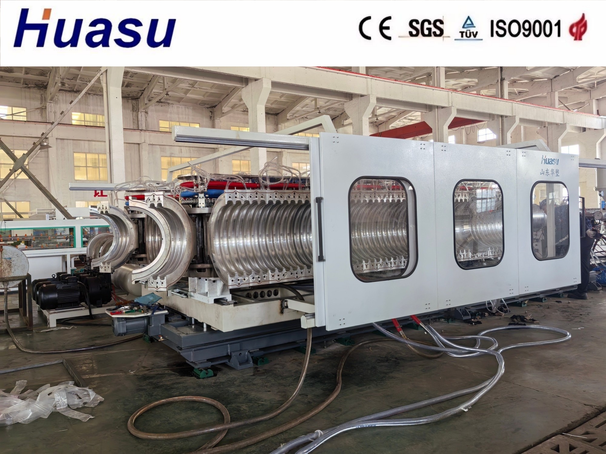 二重壁コルゲートパイプラインは、山東HUASUが開発した第三世代のアップグレード製品です。この最新バージョンは大幅な改善が見られ、押出機の出力とパイプの製造速度が前モデルと比較して20〜40%向上しました。
