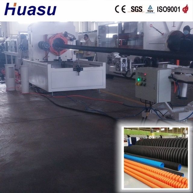 双壁のゴラゴラパイプラインは 山東HUASUの改良製品の3世代を代表しています前回モデルと比較して,エクストルーダの出力と生産速度が20-40%増加しているこのシステムは,完成した波紋管の製品の最適なパフォーマンスを確保するためにオンラインベルリングを可能にします.シメンス PLC 制御システムを使用します